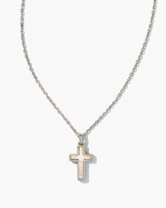 Kendra Scott Cross Pendant Necklace Gold/White Kyocera Opal