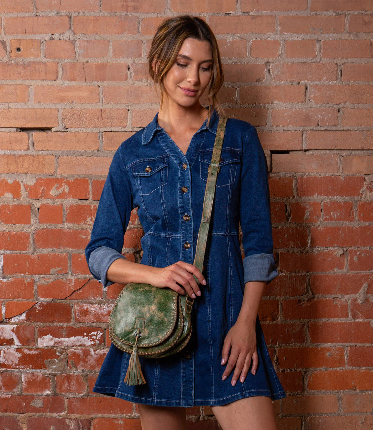 Half Moon is a crossbody purse detailed with bold woven stitching on edges and finished with a playful leather tassel. For closure, there is a metal clasp, while the interior features a zippered pocket and two slip pockets for easy organization. Complete with an adjustable strap, it's equal parts function and handcrafted charm.